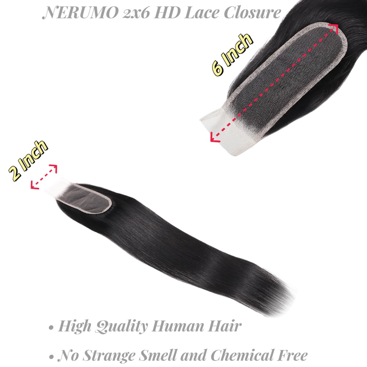 2x6 HD Lace Closure Straight Human Hair 20 Inch 2 by 6 HD Lace Closure 100% Brazilian Virgin Unprocessed Middle Part Human Hair Kim K Closure With Baby Hair Natural Color
