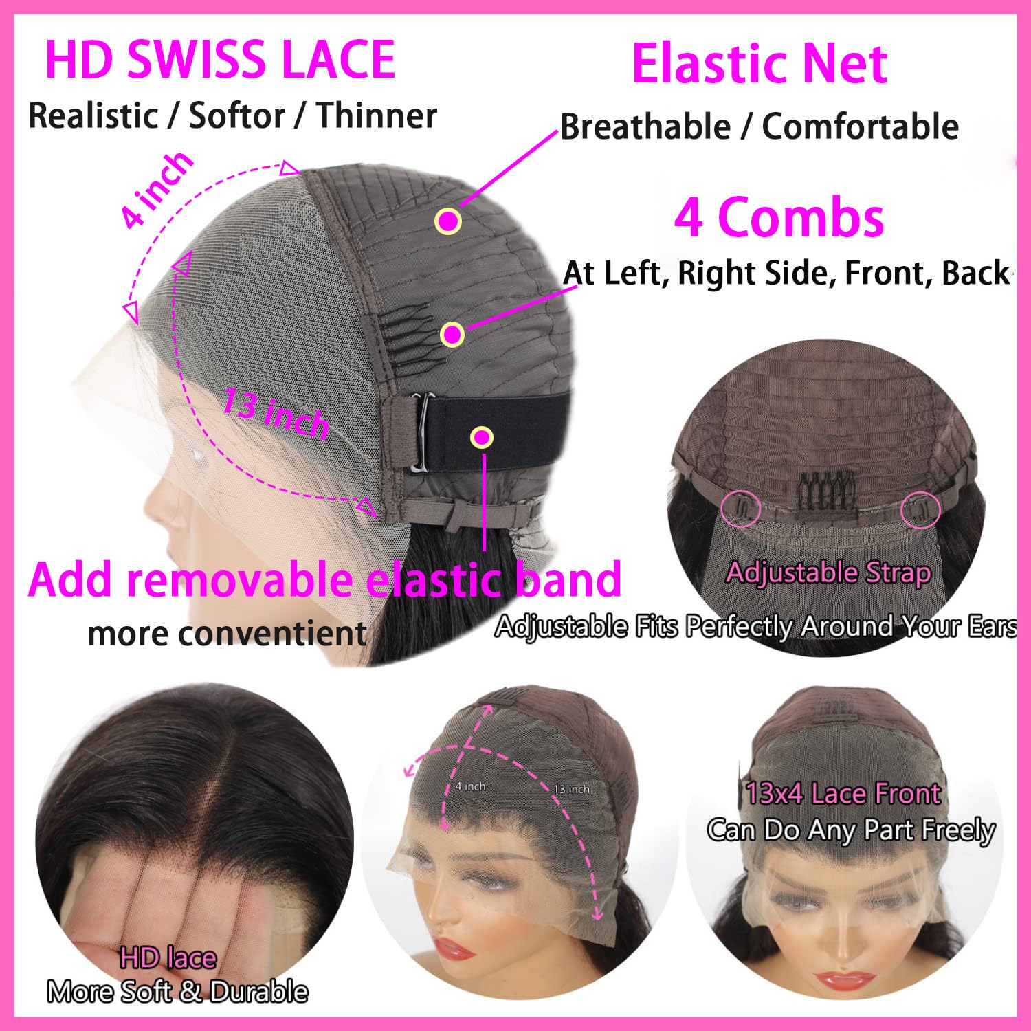 - Bob Lace Front Wigs Cap:8-16 inches available,Adjustable Cap(22.0 To 22.5 Inch) Fit In Small Medium And Large Head, with 4 Combs and Adjustable Straps, Cap To Adjust The Size According To Your Comfort, skin-friendly and breathable, giving you a more comfortable wearing experience