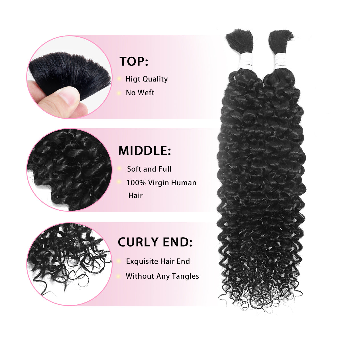 • Hair Quality : Bulk Human Hair for Micro Braiding Hair is made with 100% Raw and Unprocessed Human Hair, All the cuticles intact and aligned in the same direction.